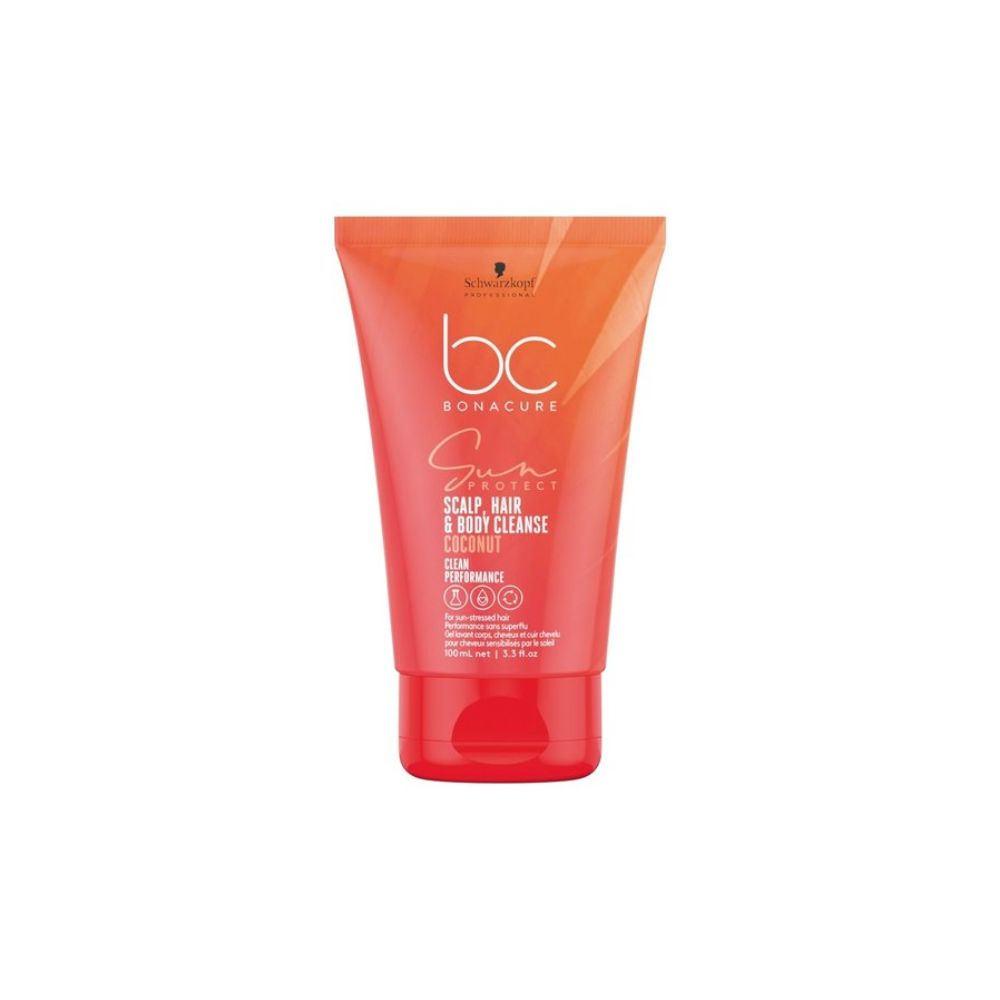 Schwarzkopf Bonacure Sun 3in1 Scalp,Hair&Body is een after-sun reiniger voor de hoofdhuid, haar en het lichaam. Het product verwijdert resten van zonnebrand, chloor en zeewater. Door blootstelling aan de zon raakt het haar en lichaam beschadigd, maar door ingrediënten als kokosolie en panthenol worden de vochtbalans en hydratatie weer in evenwicht gebracht. De hoofdhuid en het lichaam worden niet alleen gereinigd, maar tegelijkertijd ook gevoed.