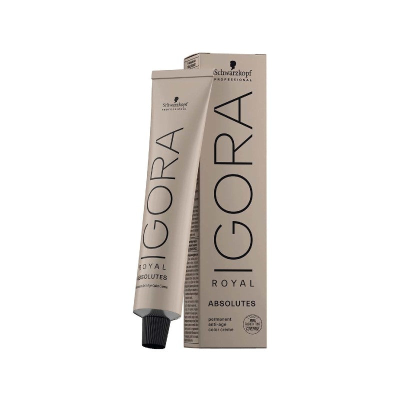 Schwarzkopf Igora Royal Absolutes Haarverf is een permanente haarkleuring. Schwarzkopf Igora Royal Absolutes Haarverf zorgt voor een goede egale dekking en een natuurlijk kleurresultaat. Deze haarverf biedt 80% tot 100% grijsdekking aan het haar, waardoor hij ideaal is voor mensen wiens haar grijs begint te worden. Doordat de haarverf aminozuren bevat, wordt het kleurproces verkort en het haar hersteld.