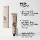 Schwarzkopf BlondMe Deep Toning zorgt voor perfecte blonde resultaten en zuivert opgelichte en donkere haarbasissen of het natuurlijke blonde haar.