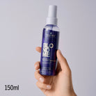 Schwarzkopf Professional Bond Repair Purple Spray Conditioner met BOND REPAIR TECHNOLOGY neutraliseert ongewenste gele ondertonen en voorkomt een koperachtige gloed. De lichte, niet-verzwarende formule ontwart het haar direct en laat een prachtige, zilveren glans achter. Verrijkt met amandelolie en korenbloem, voedt het de lokken en behoudt het een frisse, koele tint zonder de haarkleur te veranderen.