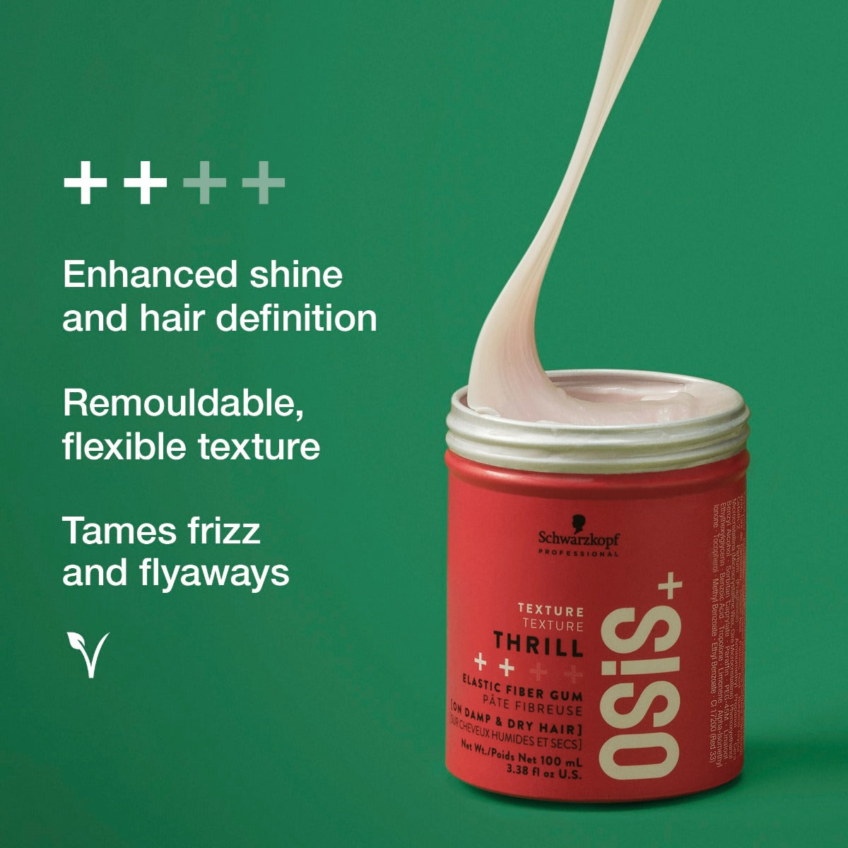 Osis Texture Thrill is een glansverbeterende haargum van elastische vezels die alle haartexturen accentueert!