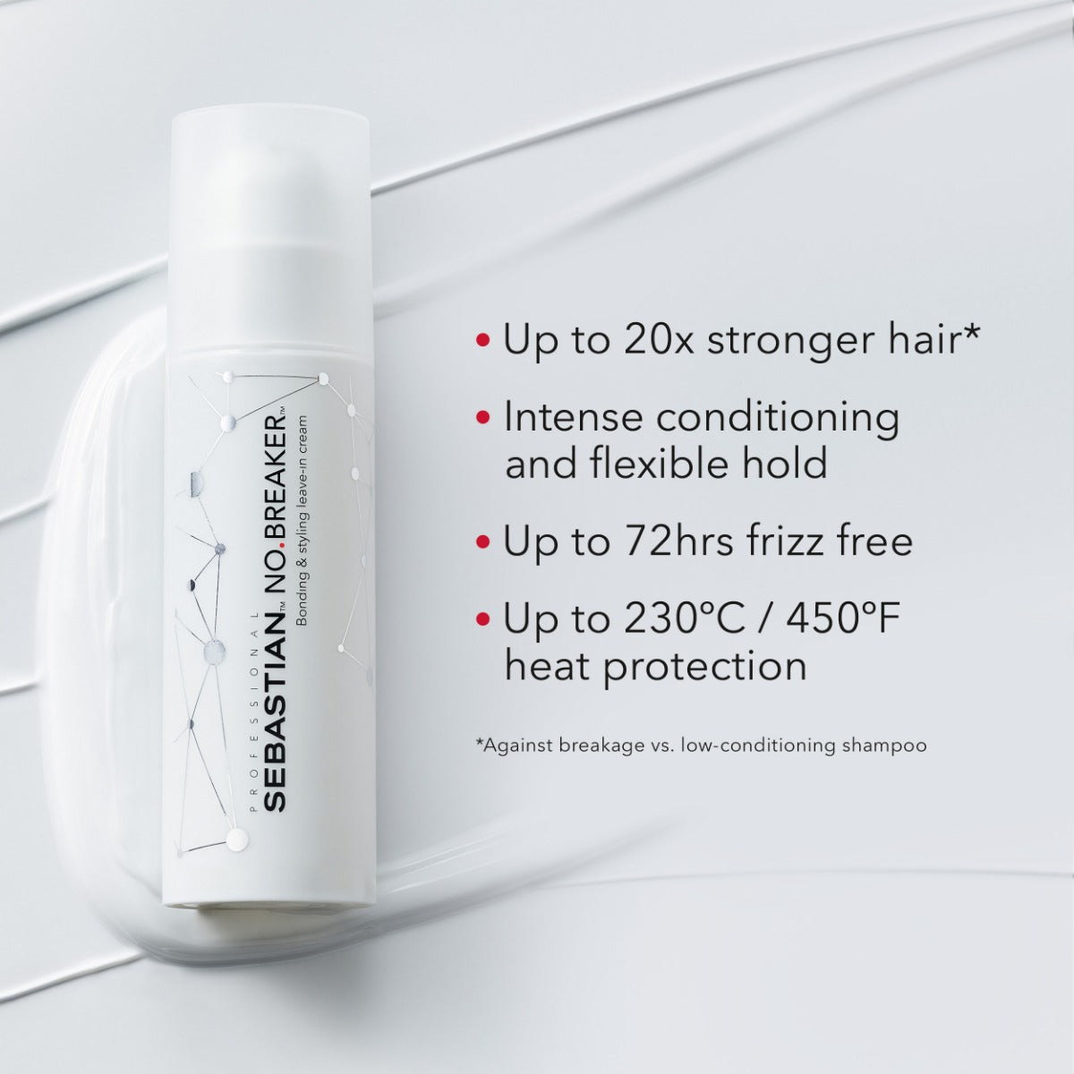 Na gebruik van de No.Breaker Bonding & Styling Leave-in Cream is het haar tot wel 72 uur pluisvrij en beschermd tegen hitte tot 230°C/450°F. Het haar voelt zacht aan, is beter beheersbaar en heeft een flexibele fixatie.