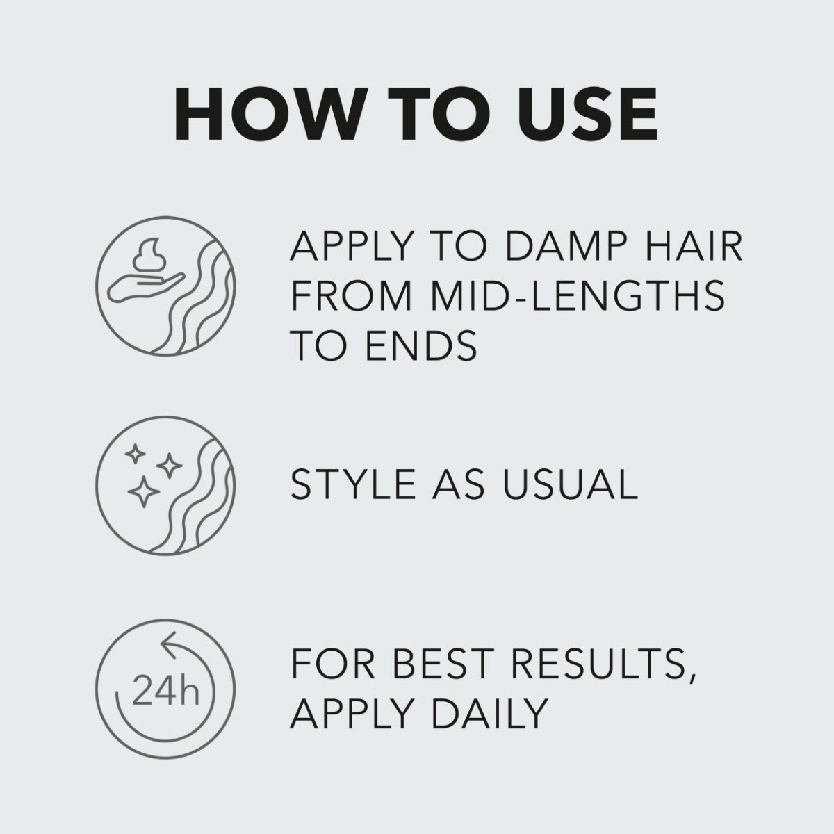 - Breng een kleine hoeveelheid aan op handdoekdroog haar.