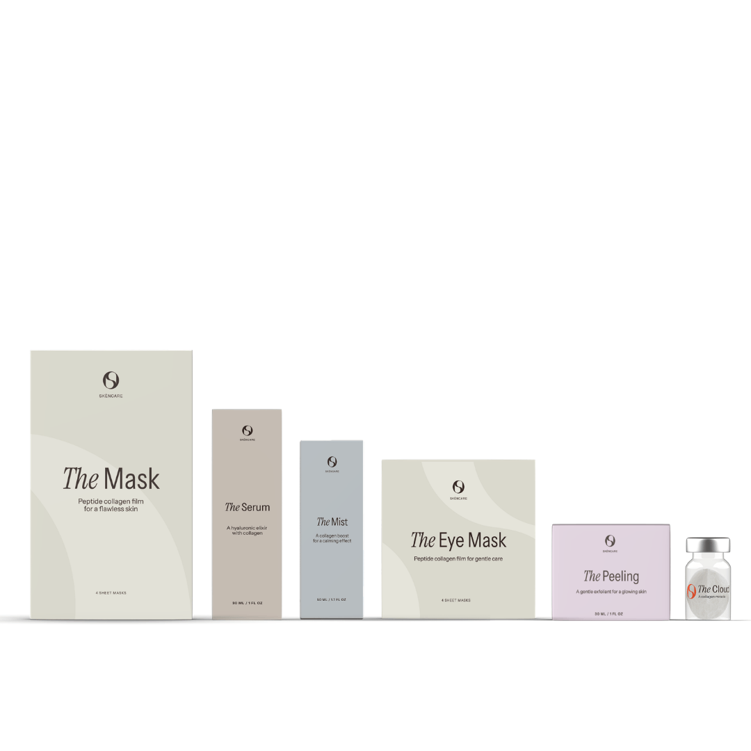 - Breng The Serum aan voor intensieve collageenverzorging, het serum masseer je in met je vingers of de speciale Wand Applicator van Skéncare