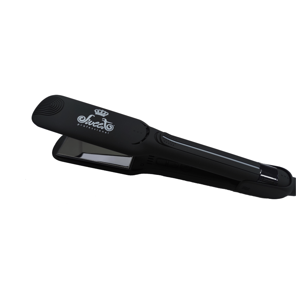 Sweet Professional Stijltang is een high-performance tool ontworpen voor veelzijdige styling en salonwaardige resultaten. Dankzij de zwevende titanium platen glijdt de tang moeiteloos door het haar, terwijl de afgeronde behuizing ook ideaal is voor het creëren van zachte krullen en golven. De geavanceerde warmteregeling tot 250 °C en het gelijkmatige verwarmingssysteem zorgen voor een constante temperatuur, zodat het haar glad, glanzend en pluisvrij blijft, elke keer weer.
