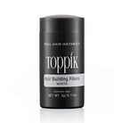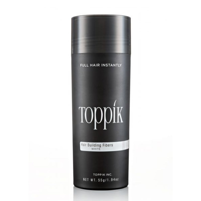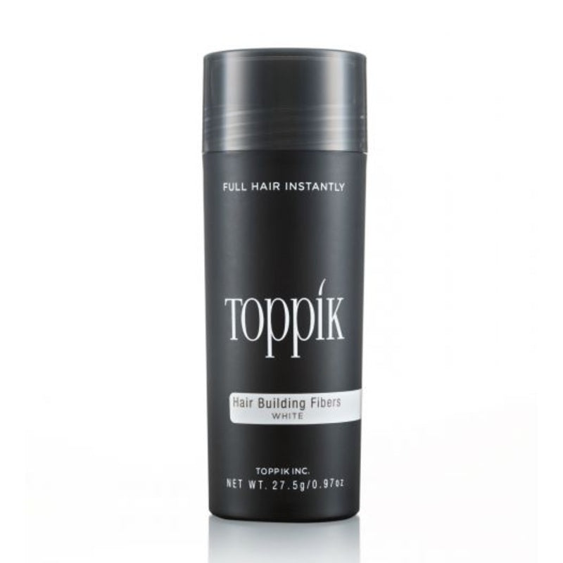 Toppik Hairbuilding Fibers White is een innoverende poeder die ideaal geschikt is voor mensen met zichtbaar dunner wordend haar. Het is gemaakt van minuscule Keratine microvezels die in natuurlijk haar ook zitten verwerkt. Wanneer Toppik Hairbuilding Fibers White wordt aangebracht op het haar zullen duizenden minuscule micro haarvezels zich mengen met het eigen haar. Door middel van statische elektriciteit hechten de vezeltjes zich aan het eigen haar zodat ze op hun plaats blijven. De micro haarvezels blijven de gehele dag zitten, geeft niet af en schilfert of irriteert niet. Het is na fixatie bestand tegen wind, regen en transpiratie. Het is ook erg makkelijk uit te wassen met een shampoo. Toppik Hairbuilding Fibers White is verkrijgbaar in vier maten. Ook is het te mengen met andere kleuren van Toppik Hairbuilding Fibers om de ideale kleur te krijgen die bij het natuurlijke haar past.