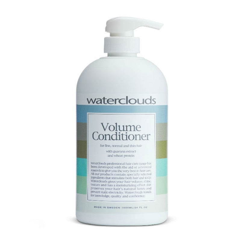 Waterclouds Volume Conditioner is een verzorgende balsem die het haar extra body en volume geeft. Deze conditioner bevat extracten van Guarana en bamboo die er voor zorgen dat het haar wat dikker aanvoelt en het haar sterker maakt. Door toevoeging van graan proteïnen en zeemineralen krijgt het haar extra glans en meer elasticiteit. Waterclouds Volume Conditioner bevat geen parabenen en de verpakking is gemaakt van biologisch afbreekbaar plastic. Deze conditioner is geschikt voor alle haartypen.