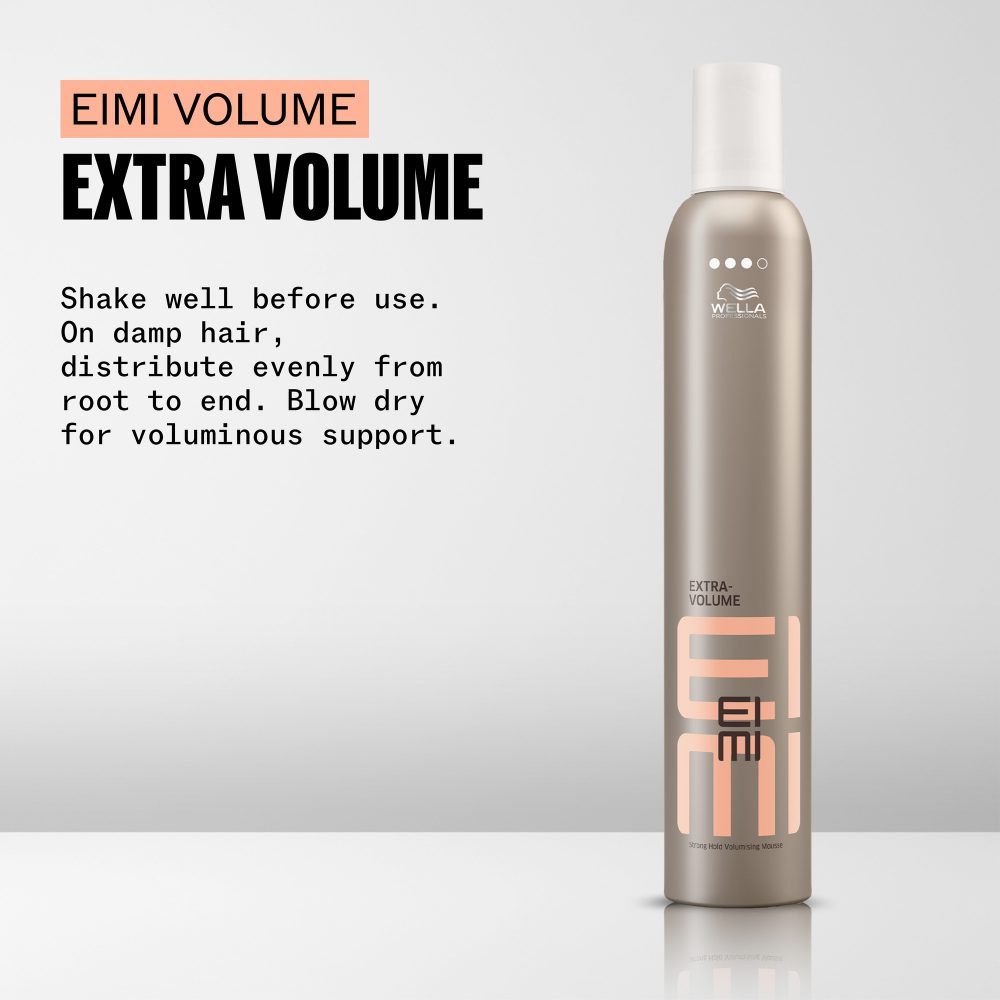 Wella Professionals EIMI Extra Volume Mousse is een Strong Hold Volumising Mousse waarmee indrukwekkend volume met een sterke hold kunnen worden gecreëerd. Daarnaast bevat deze mousse een speciale formule om uitdroging tegen te gaan tijdens het föhnen. Hold level 3.