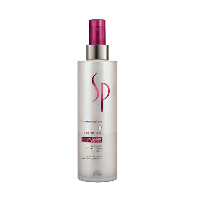 Speciaal voor gekleurd haar heeft Wella nu een color save Bi- Phase spray conditioner. De bovenste melkachtige substantie is verrijkt met kleurverzorgende ingrediënten die ervoor zorgen dat de haarkleur niet vervaagt of verandert en behoudt de frisheid ervan. De onderste heldere fase beschermt de natuurlijke proteïnestructuur van het haar door de vrije radicalen in te kapselen.