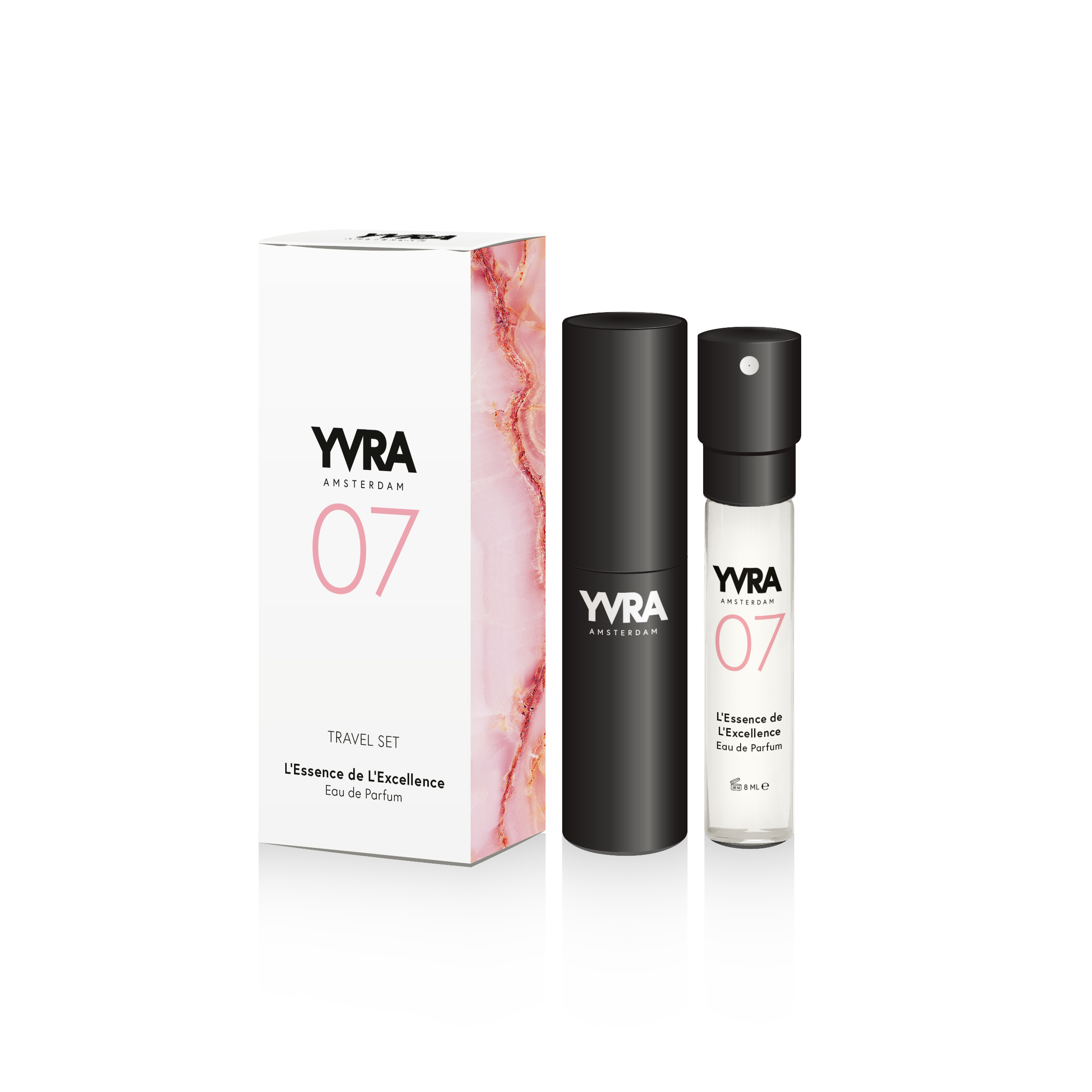 YVRA 07 – L’Essence of L'Excellence omhult je in een zachte, romantische geur met diepte en verfijning. Een langdurige geur die perfect balanceert tussen fruitige frisheid, florale zachtheid en poederige warmte – een moderne klassieker in wording.